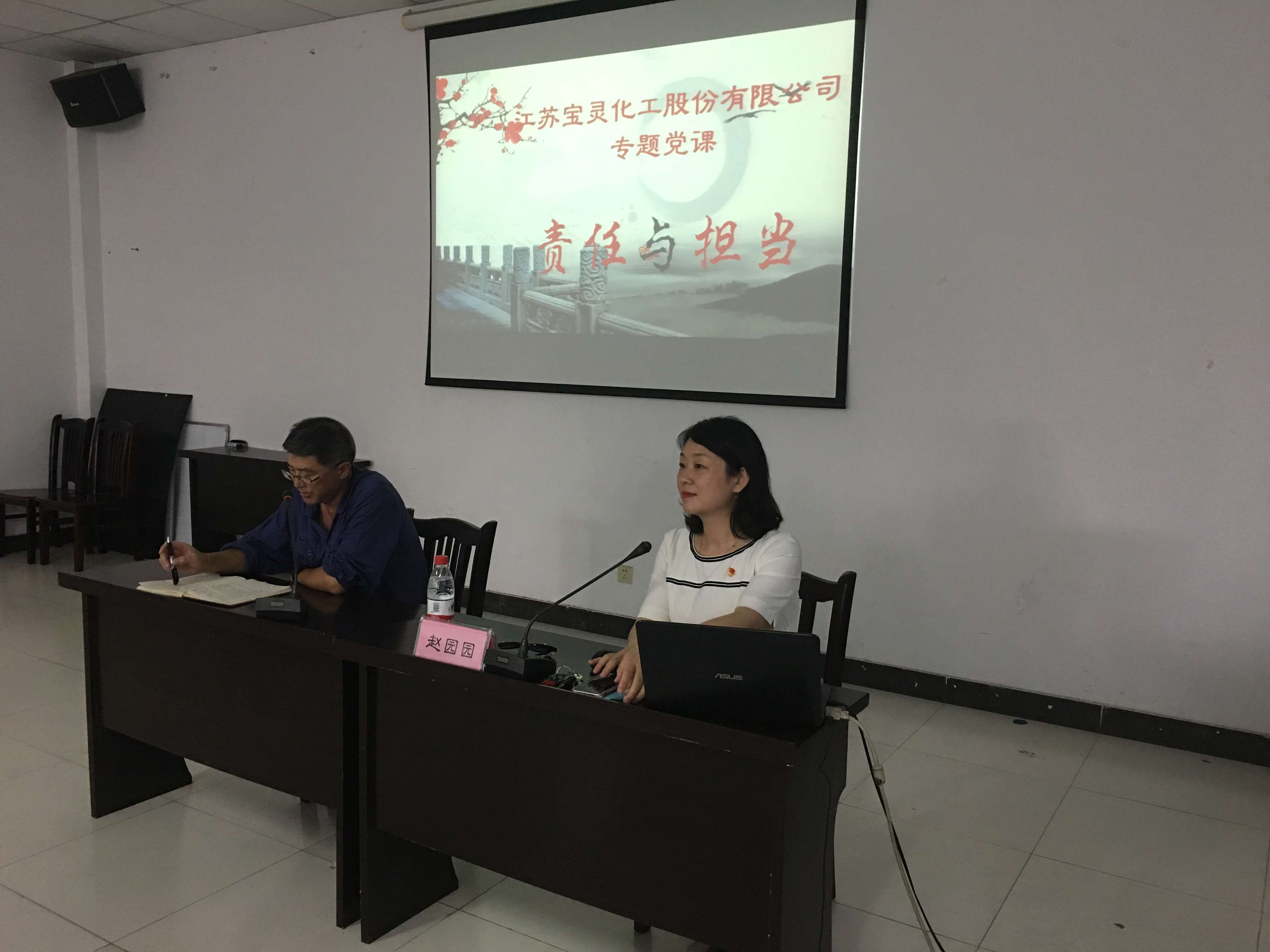 為深入學(xué)習(xí)貫徹黨的十九大精神和習(xí)近平新時代中國特色社會主義思想,紀(jì)念建黨 97 周年,堅定理想信念,加強(qiáng)黨性修養(yǎng),寶靈化工黨委在6月底按期完成省、市委組織部《關(guān)于召開“進(jìn)一步解放思想,激勵新時代新?lián)?dāng)新作為”專題組織生活會》的基礎(chǔ)上,于7月19日下午組織全體黨員干部、入黨積極分子近六十人,舉行了“責(zé)任與擔(dān)當(dāng)”專題黨性教育,特邀南通市委黨校趙園園博士前來公司作《責(zé)任與擔(dān)當(dāng)》黨課輔導(dǎo)。7月23日的辦公會上,朱文新董事長又進(jìn)一步強(qiáng)調(diào),全體黨員干部必須立足本職本崗,做到“對待工作極端盡責(zé),難題面前勇于負(fù)責(zé),出現(xiàn)過失敢于擔(dān)責(zé)”,把一個黨員干部該擔(dān)當(dāng)?shù)呢?zé)任體現(xiàn)到干事創(chuàng)業(yè)、奮發(fā)有為的具體行動上。