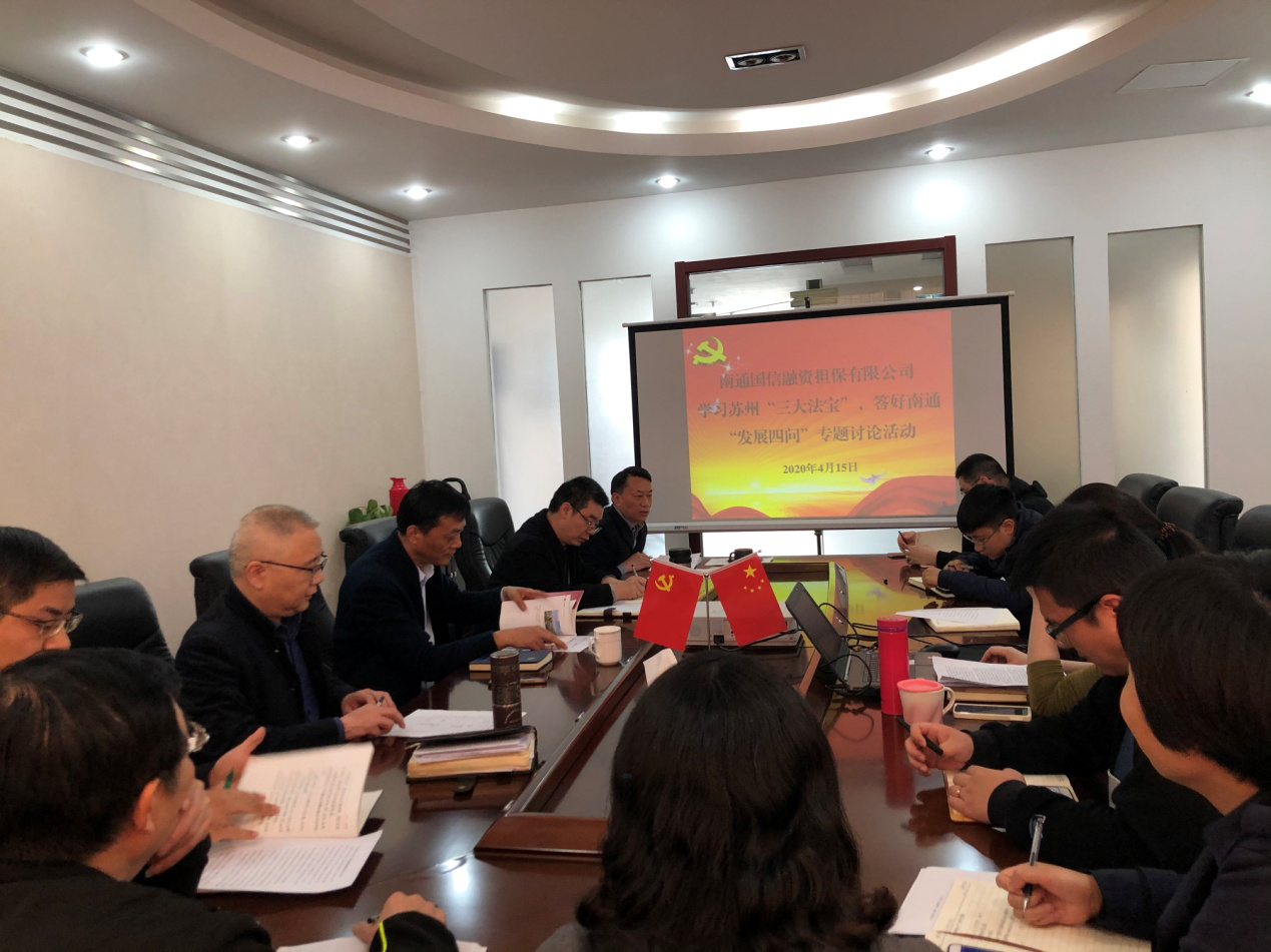國信擔(dān)保公司召開學(xué)習(xí)蘇州“三大法寶”,答好南通 “發(fā)展四問”專題討論活動