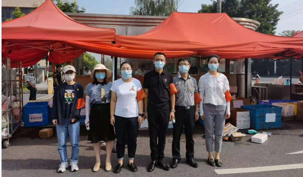 園區(qū)防疫是阻斷疫情傳播最基礎(chǔ)、最關(guān)鍵的環(huán)節(jié)。由于入駐企業(yè)較多,當前智匯產(chǎn)業(yè)園門崗排查任務重,特別是早高峰時段,車輛人員集中,導致通行不暢。為積極投身園區(qū)疫情防控工作,國盛黨支部主動聯(lián)系園區(qū),組織黨員先鋒隊和青年突擊隊分別于8月26日和27日連續(xù)兩天開展防疫志愿活動。早上八點,黨員和青年志愿者們佩戴紅袖章,為進入園區(qū)的人員測量體溫并檢查行程信息、講解防疫知識,讓群眾從思想上重視、行動上配合,牢記勤洗手、戴口罩、常消毒的防疫要點。