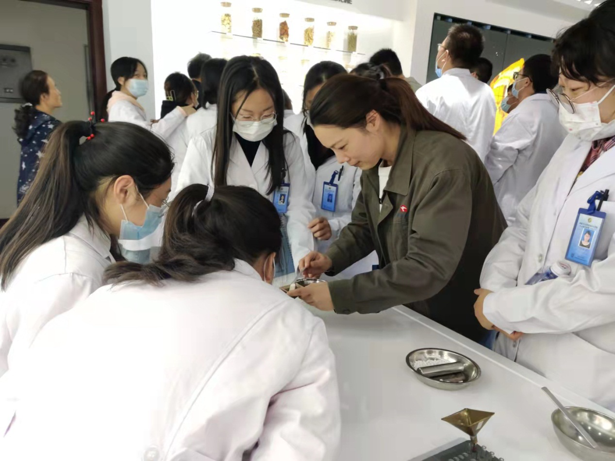 質(zhì)管處質(zhì)量工程師何峰帶領(lǐng)一行人參觀了多功能展廳,介紹了公司的基本情況、主打產(chǎn)品的功能功效。不少學生表示服用過公司正柴胡飲顆粒、王氏保赤丸產(chǎn)品,還有學生對王氏保赤丸的抄丸工具以及操作方法產(chǎn)生了濃厚興趣,現(xiàn)場體會抄丸、蓋塞等步驟。何峰還向?qū)W生隆重介紹了自己種植的“小藥園”,有公司使用的中藥材金蕎麥、半夏和佛甲草等,介紹了它們的功效、藥用部位。 隨后學生們參觀了王氏保赤丸生產(chǎn)車間,車間管理人員詳細介紹了王氏保赤丸的歷史,國家非遺技藝泛丸工序的制作過程,大家紛紛感嘆中華中醫(yī)藥制作技藝的精妙。 |