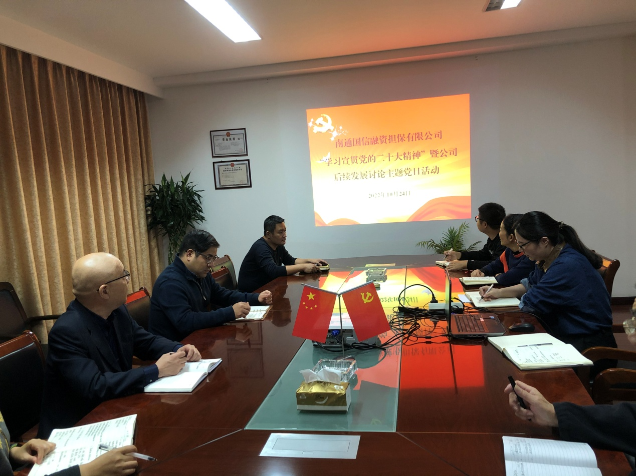 10月24日下午,國信擔保公司黨支部組織開展了“學習宣貫黨的二十大精神”暨公司后續(xù)發(fā)展討論主題黨日活動,公司全體工作人員參加了活動。