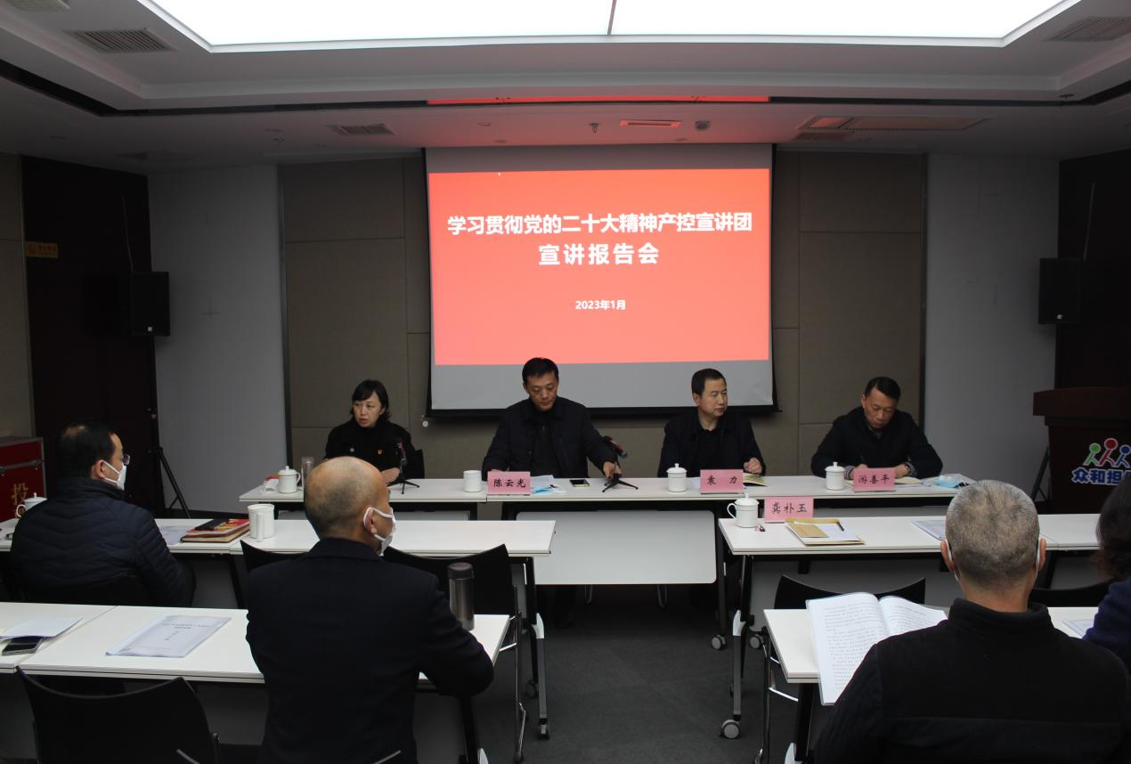 根據(jù)產(chǎn)控集團部署要求,為深入學習宣傳貫徹黨的二十大精神,1月14日下午,產(chǎn)控集團黨委委員、副總經(jīng)理陳云光、紀委副書記游善平一行走進眾和擔保開展黨的二十大精神集中宣講。公司領導班子成員、中層干部及員工代表共計30人參加宣講報告會。