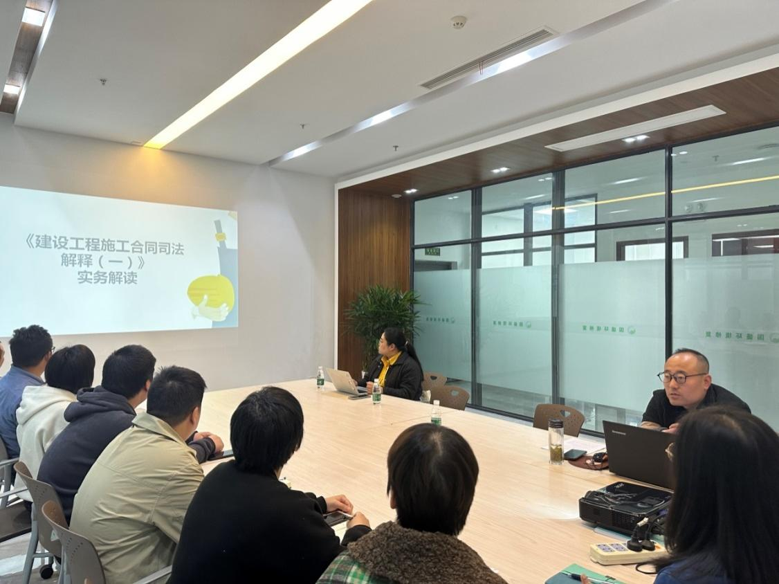 為貫徹落實(shí)黨的二十大“深入開(kāi)展法制宣傳教育,增強(qiáng)全民法制觀念”的要求,以及增強(qiáng)員工的法律意識(shí)和履約能力,公司于2023年4月10日下午組織了《建設(shè)工程施工合同司法解釋(一)》實(shí)務(wù)解讀專題培訓(xùn)活動(dòng),公司全體員工參加了培訓(xùn)活動(dòng)。